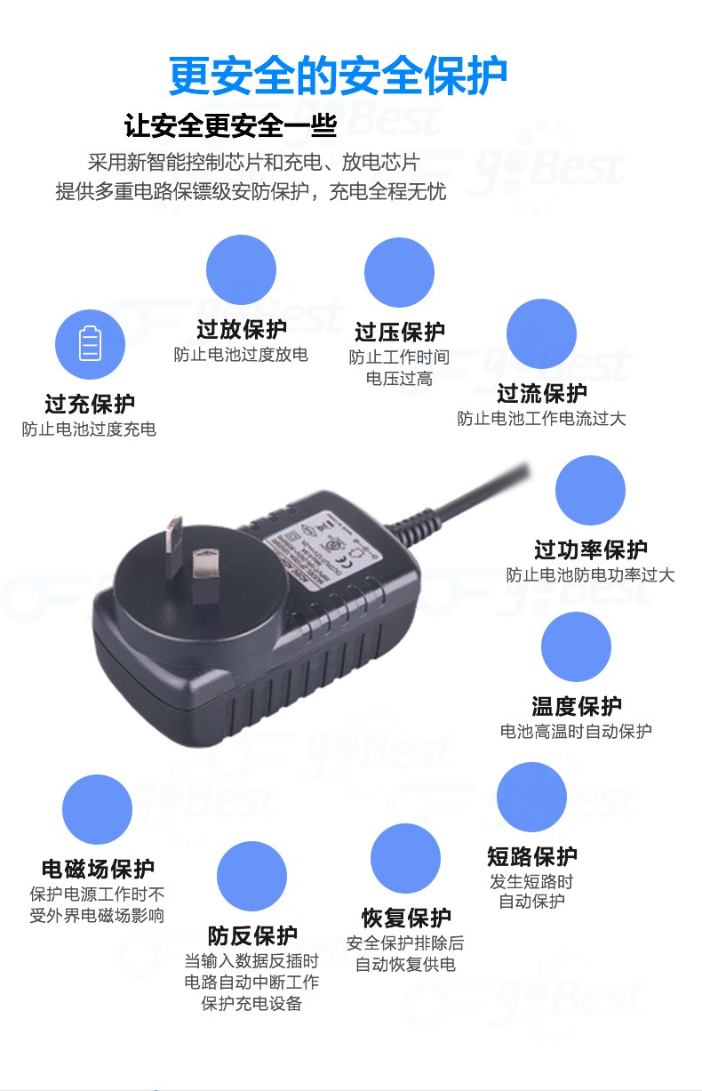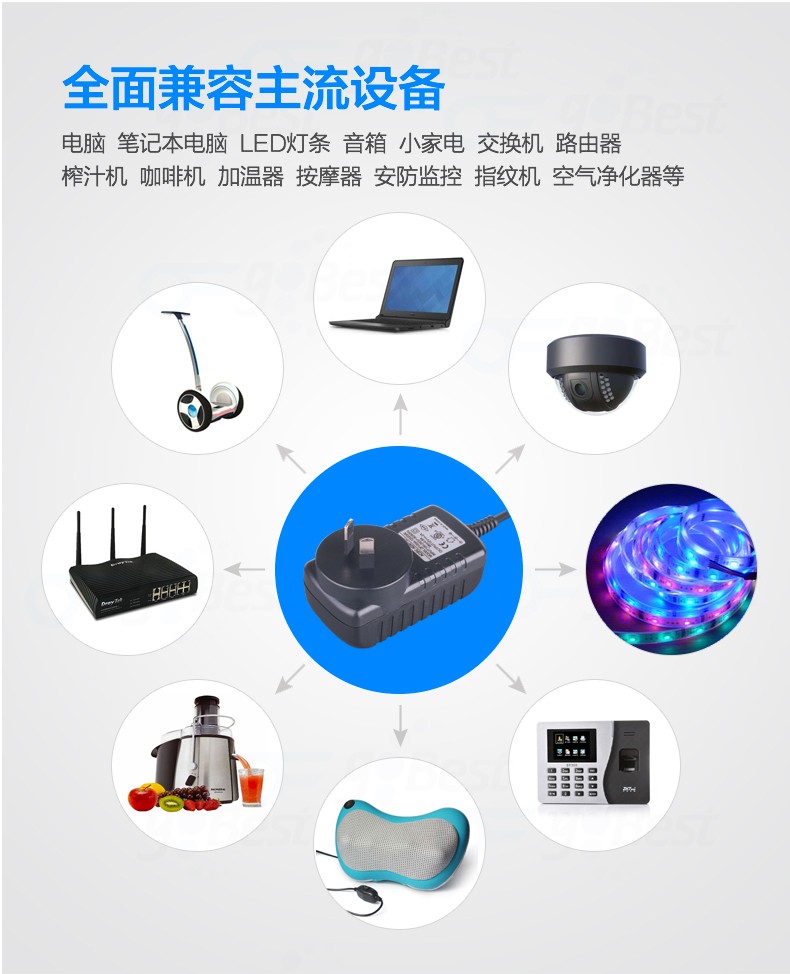 • 采用前沿IC控制方案和先進的制造工藝,高精度,低噪音;過壓,過流,過充,短路等多重保護。