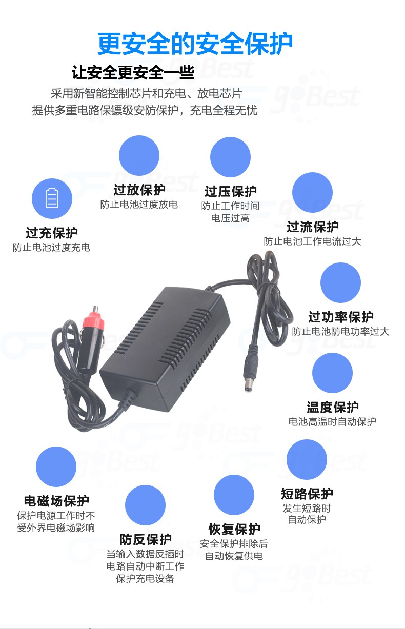 • 采用前沿IC控制方案和先進的制造工藝,高精度,低噪音;過壓,過流,過充,短路等多重保護。