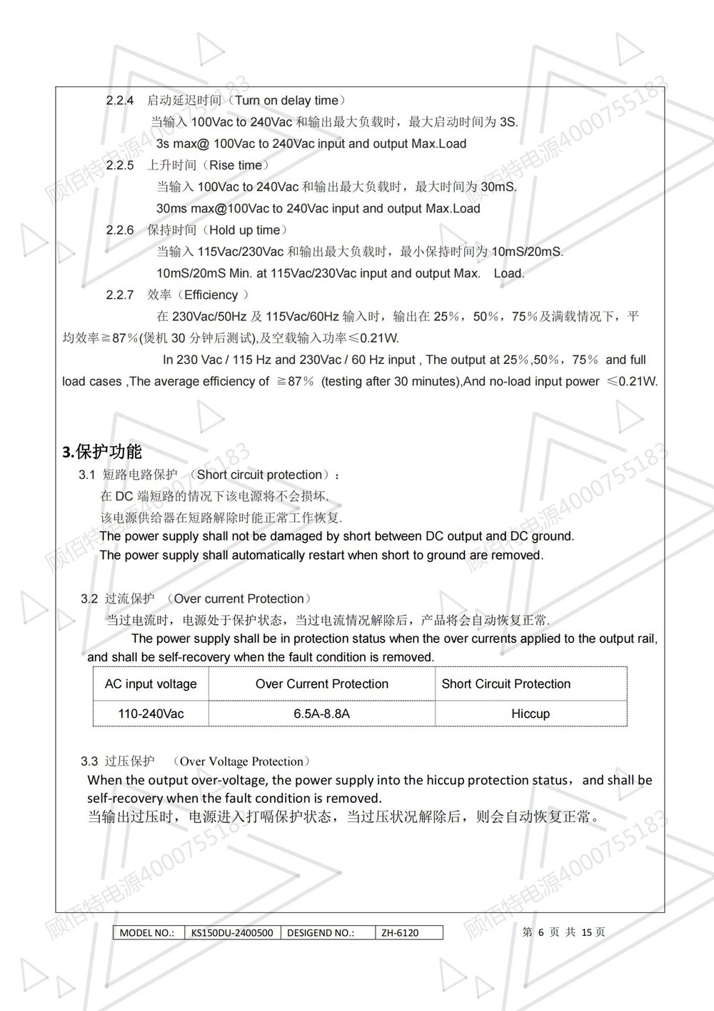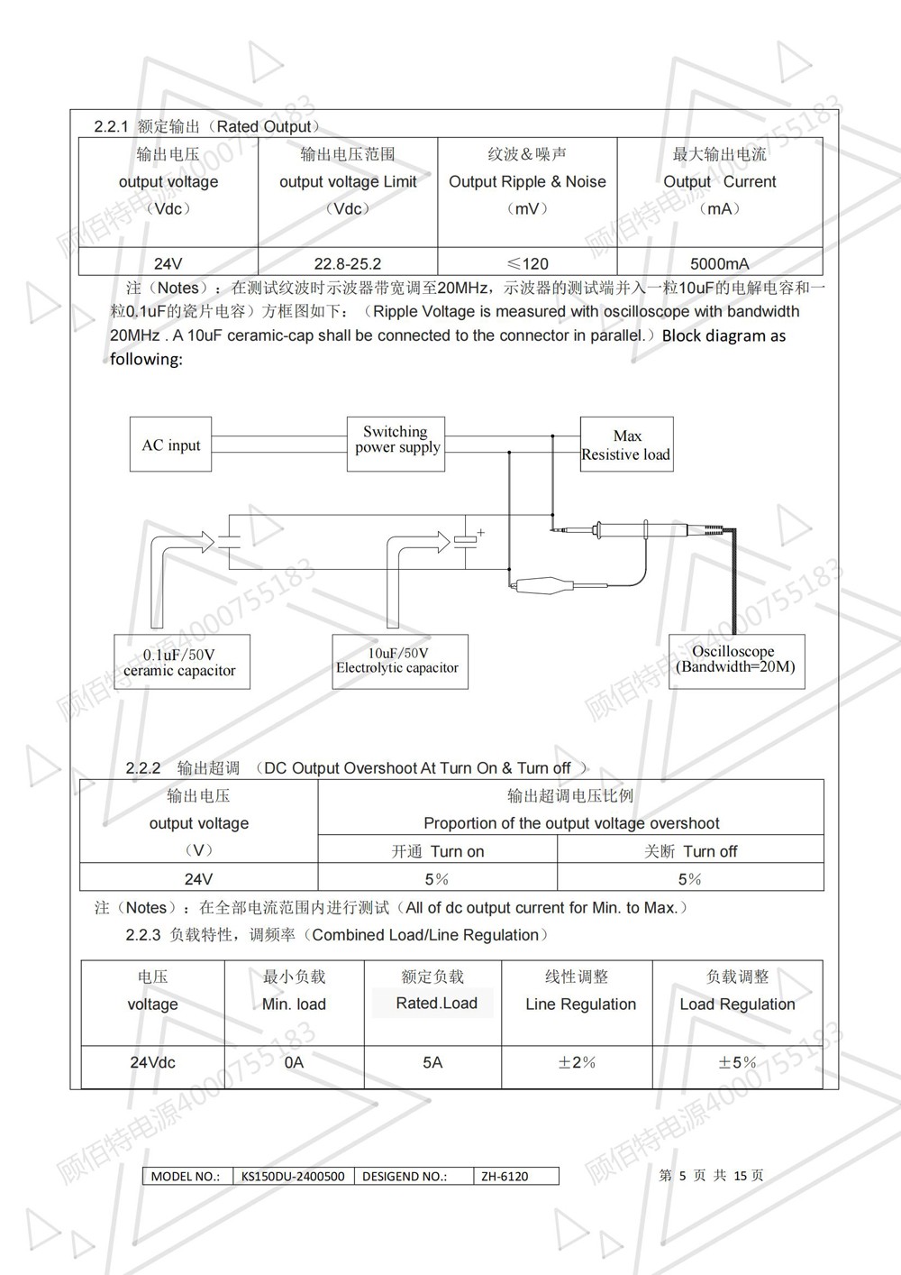 24V5A電源適配器規格書資料詳細描述了一款120W(連續輸出功率)開關電源的電氣性,結構性及環境等要求。